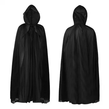 Black Hooded Cape Cloak 47-55in Unisex Costume for Halloween & Cosplay